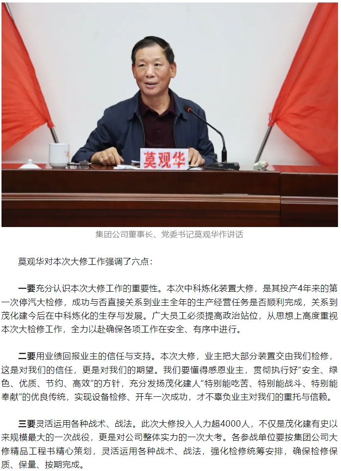 勠力同心擂響戰(zhàn)鼓 千軍萬馬出征大修——集團(tuán)公司2024年中科煉化裝置大修動(dòng)