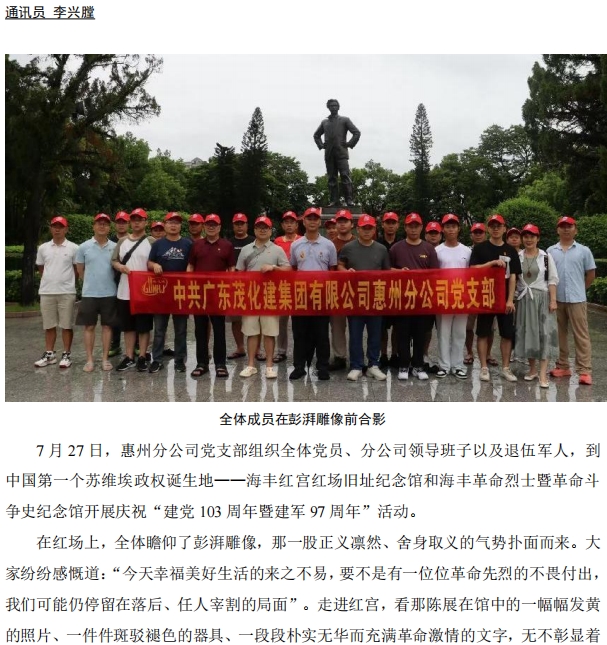 惠州分公司黨支部開展慶?!敖h103周年暨建軍97周年”活動