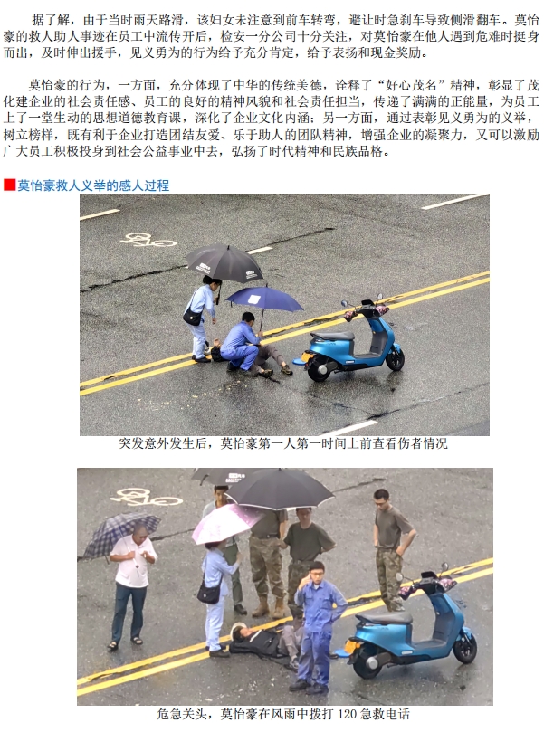 危難時(shí)刻伸援手:?jiǎn)T工莫怡豪雨中勇救突發(fā)意外路人獲贊譽(yù)