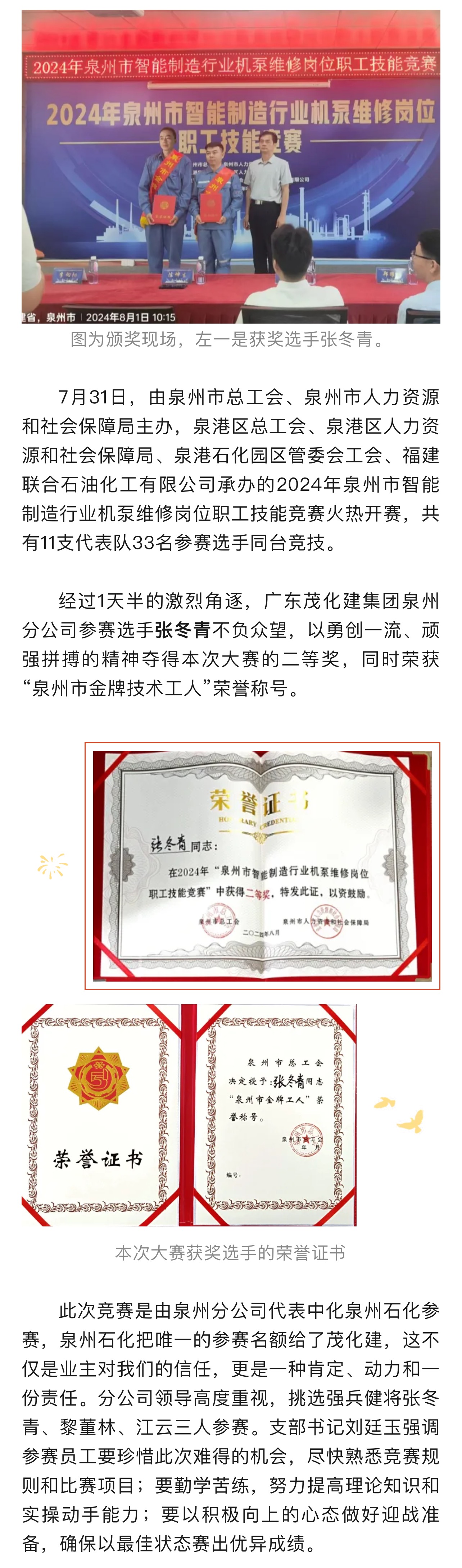 泉州分公司在泉州市維修機(jī)泵技能競賽創(chuàng)佳績