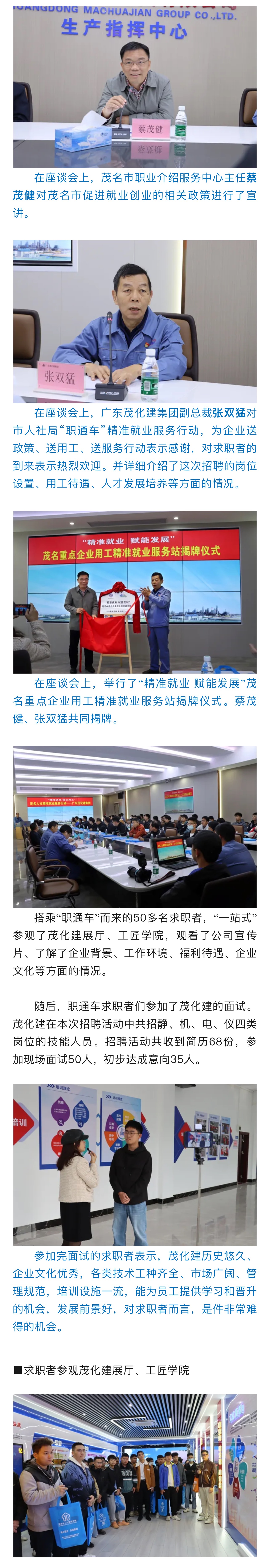 "精準送崗、保企用工”——茂名重點企業(yè)“職通車”精準就業(yè)服務行動再次走進茂化建