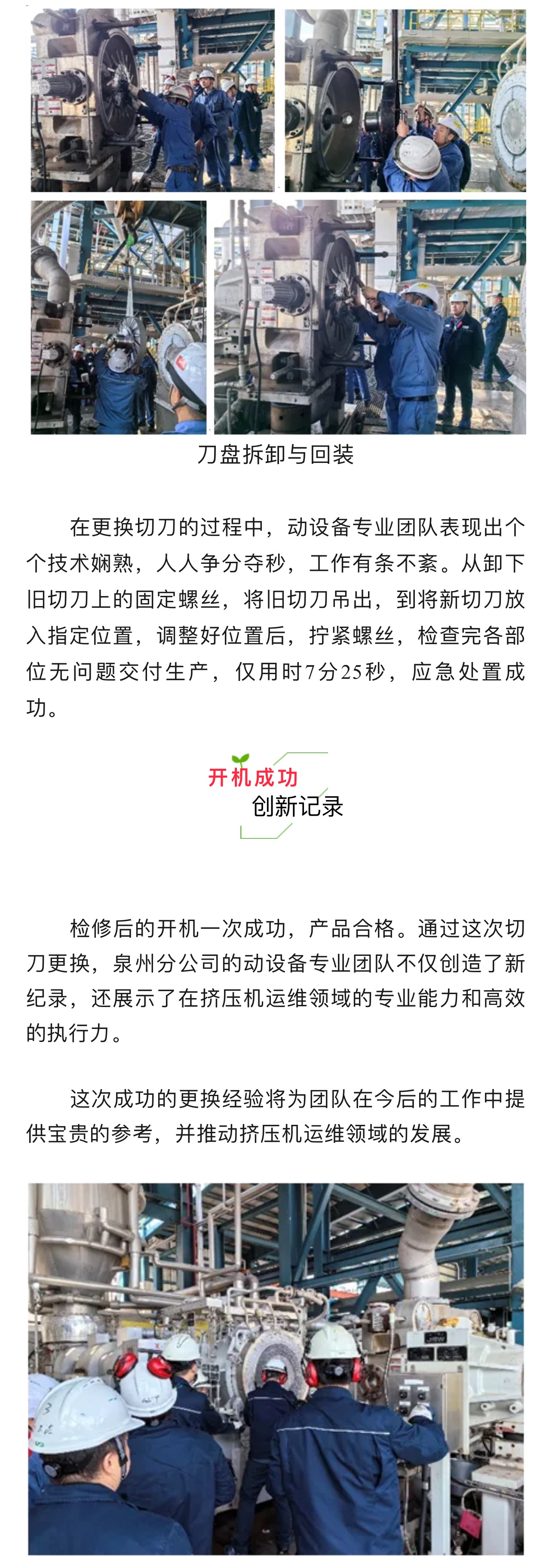 超棒!泉州動設(shè)備團隊 | 7分25秒成功在線更換擠壓機切刀