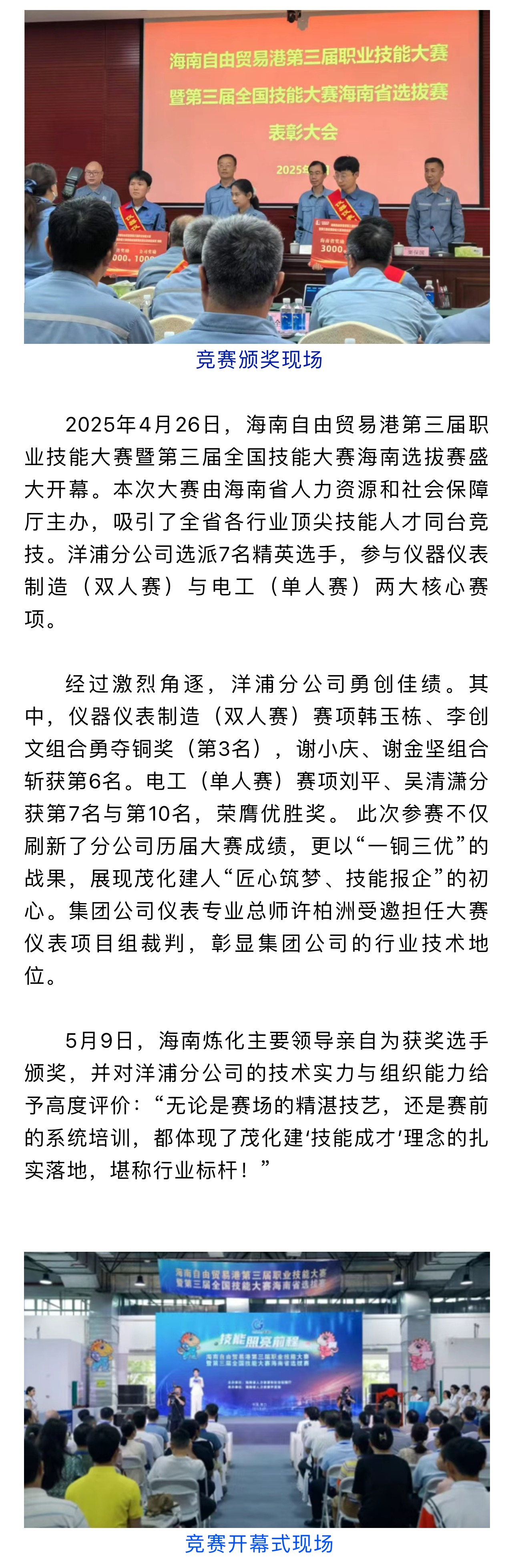 喜報(bào)|洋浦分公司海南自貿(mào)港職業(yè)技能大賽創(chuàng)佳績(jī)